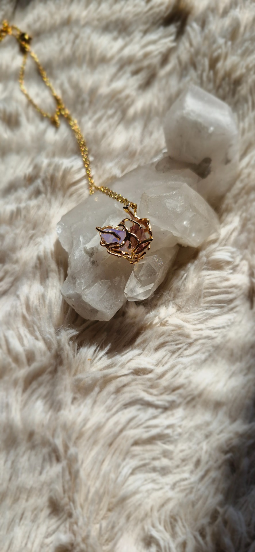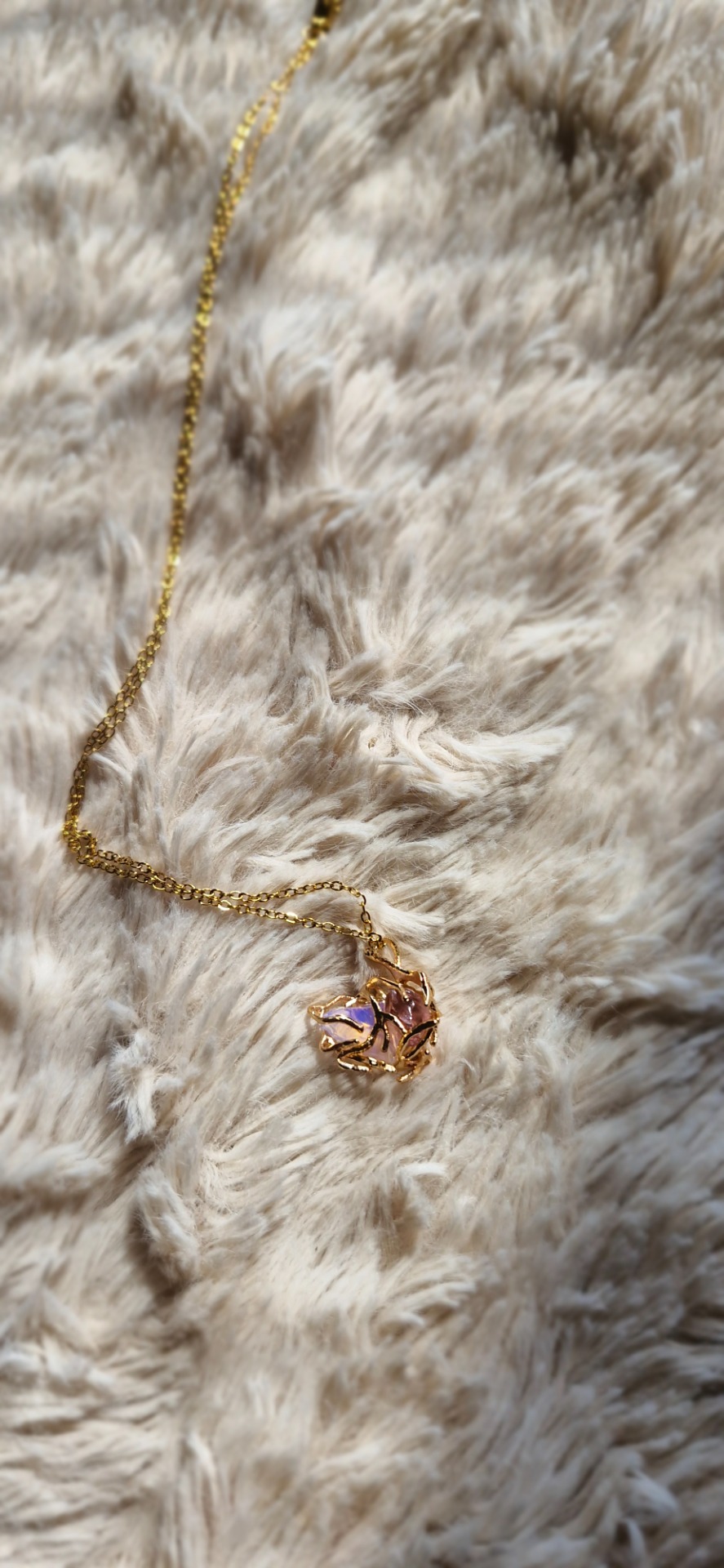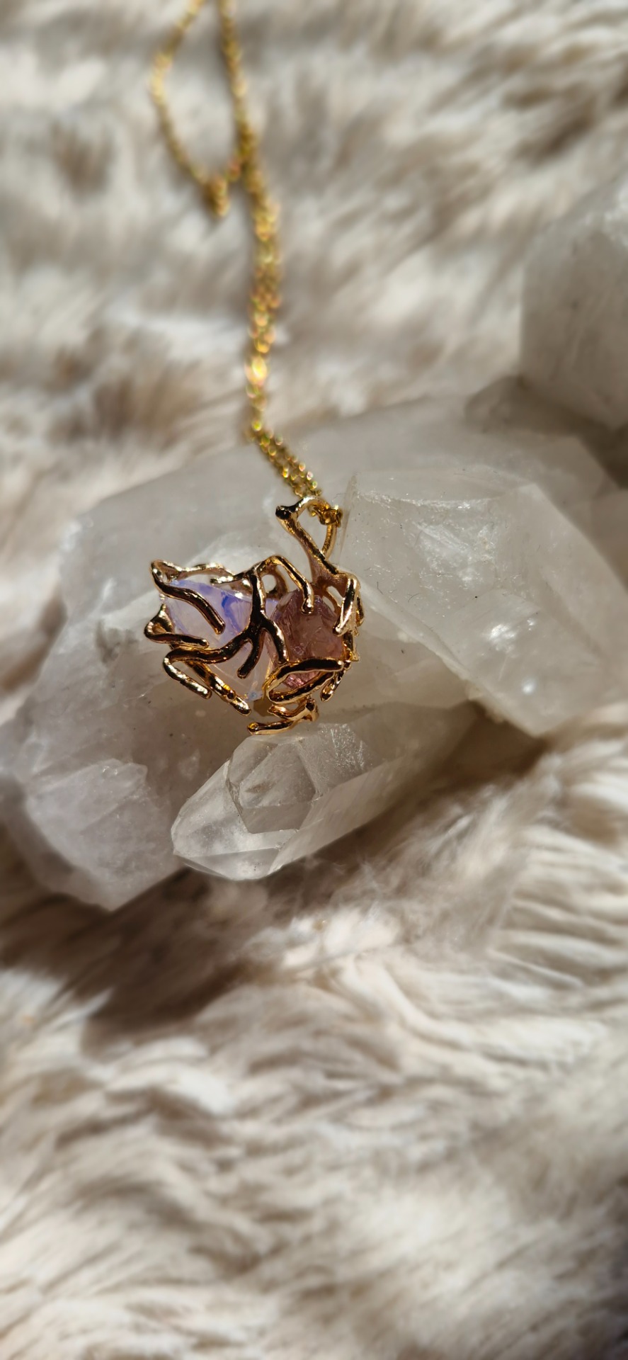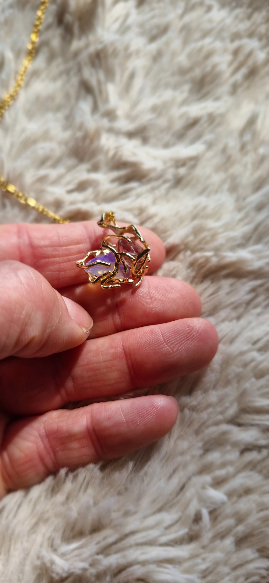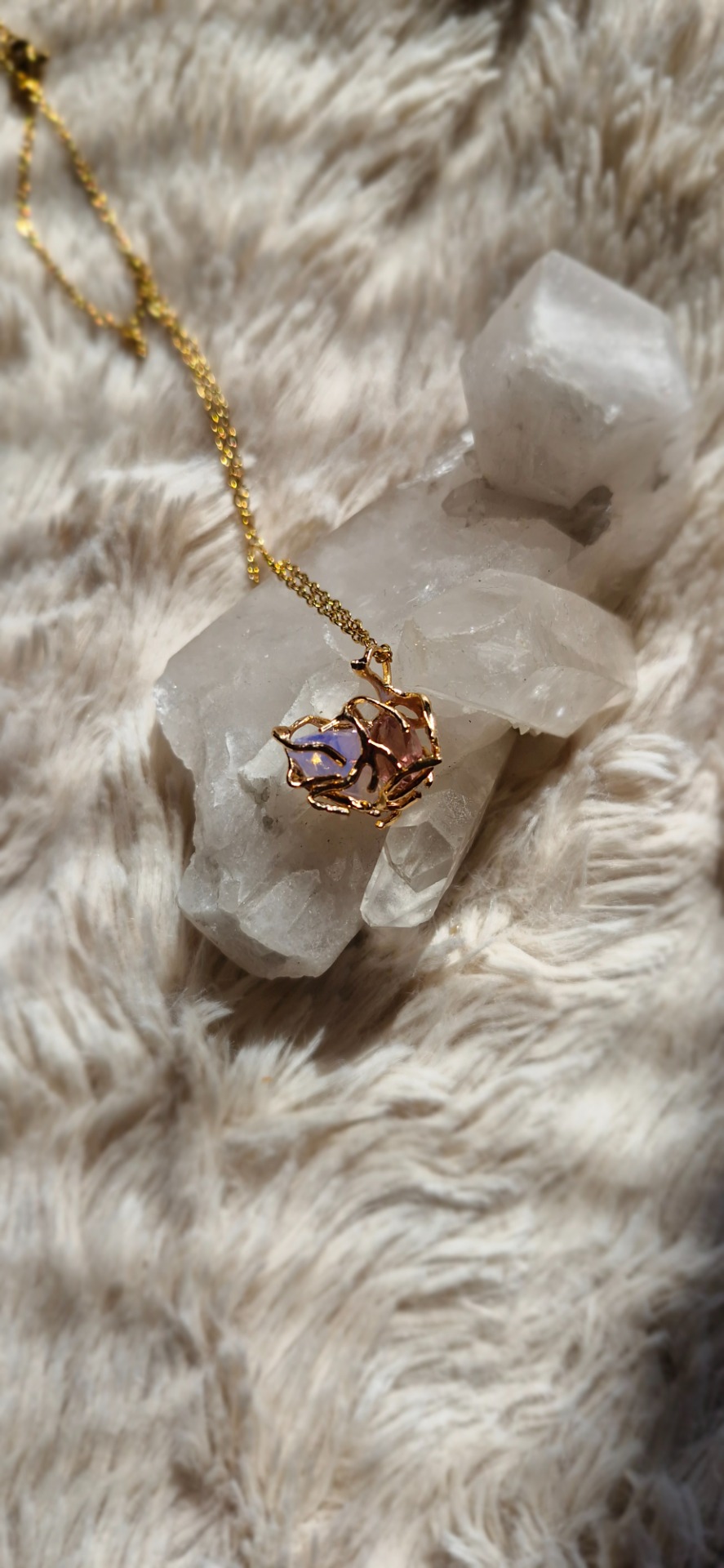 Uchytené zaujímavým, netradičným spôsob výpletu, na retiazke z chirurgickej ocele. 40cm + 5cm predlžovacia retiazka.