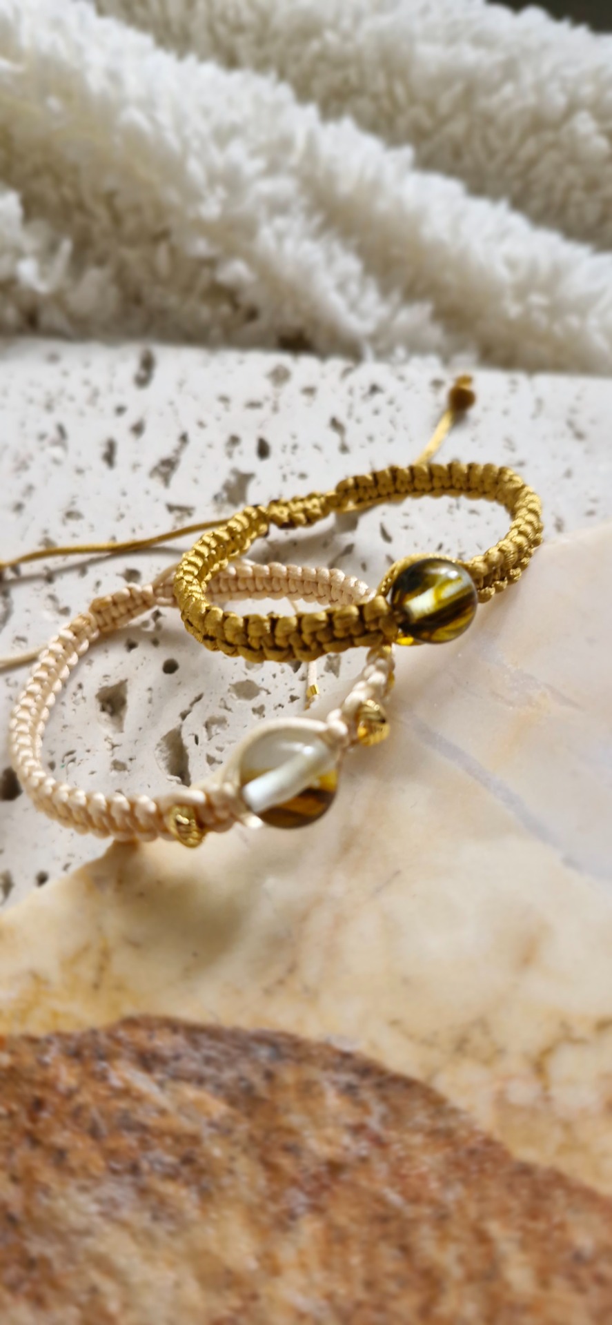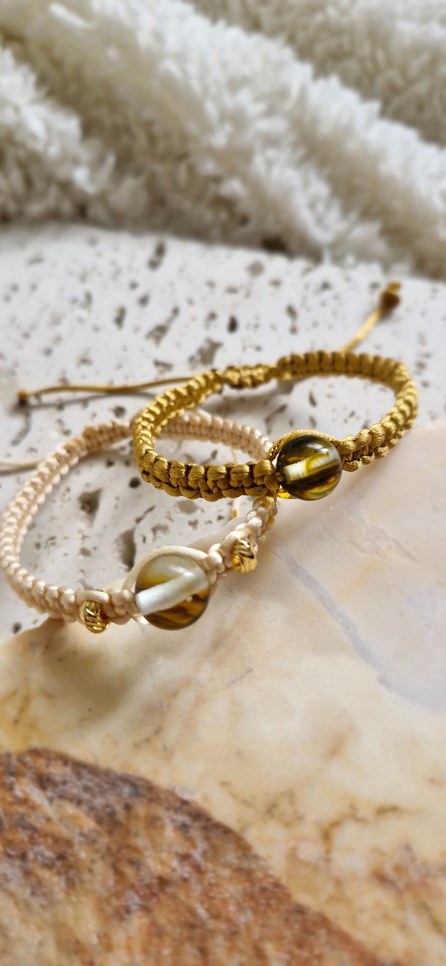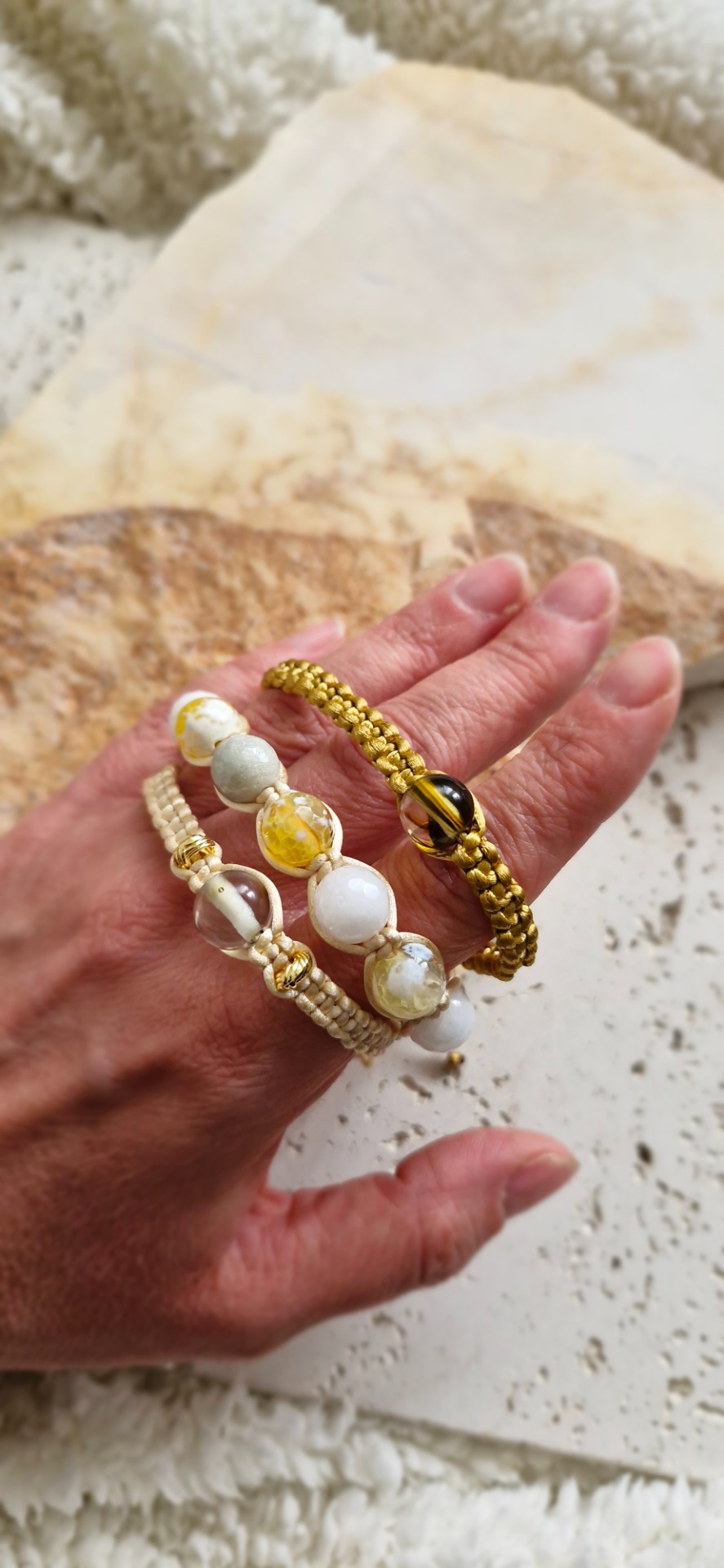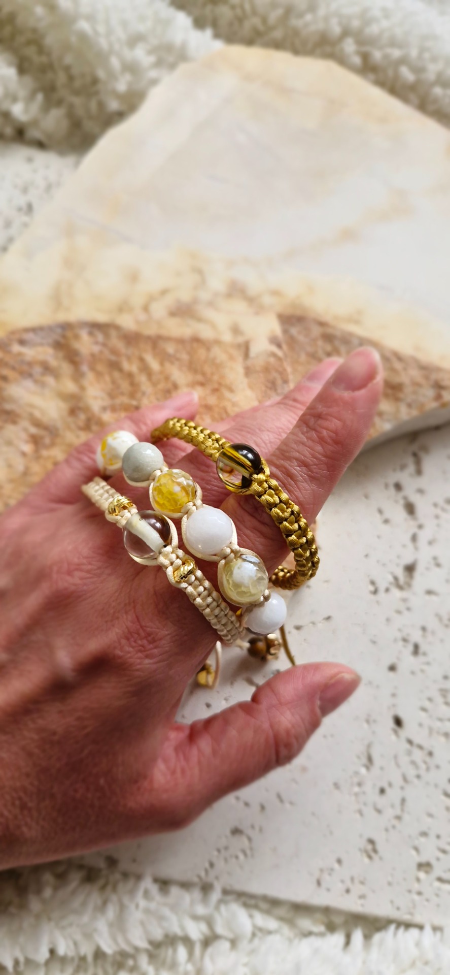 Jemný ručne prepletaný náramok so stredovou korálkou z Andarky aquarel je doplnený kvalitnými komponentmi z pozlátenej chirurgickej ocele. Minimalistický dizajn zvýrazňuje krásu Andarky a zároveň pôsobí veľmi elegantne a nadčasovo.