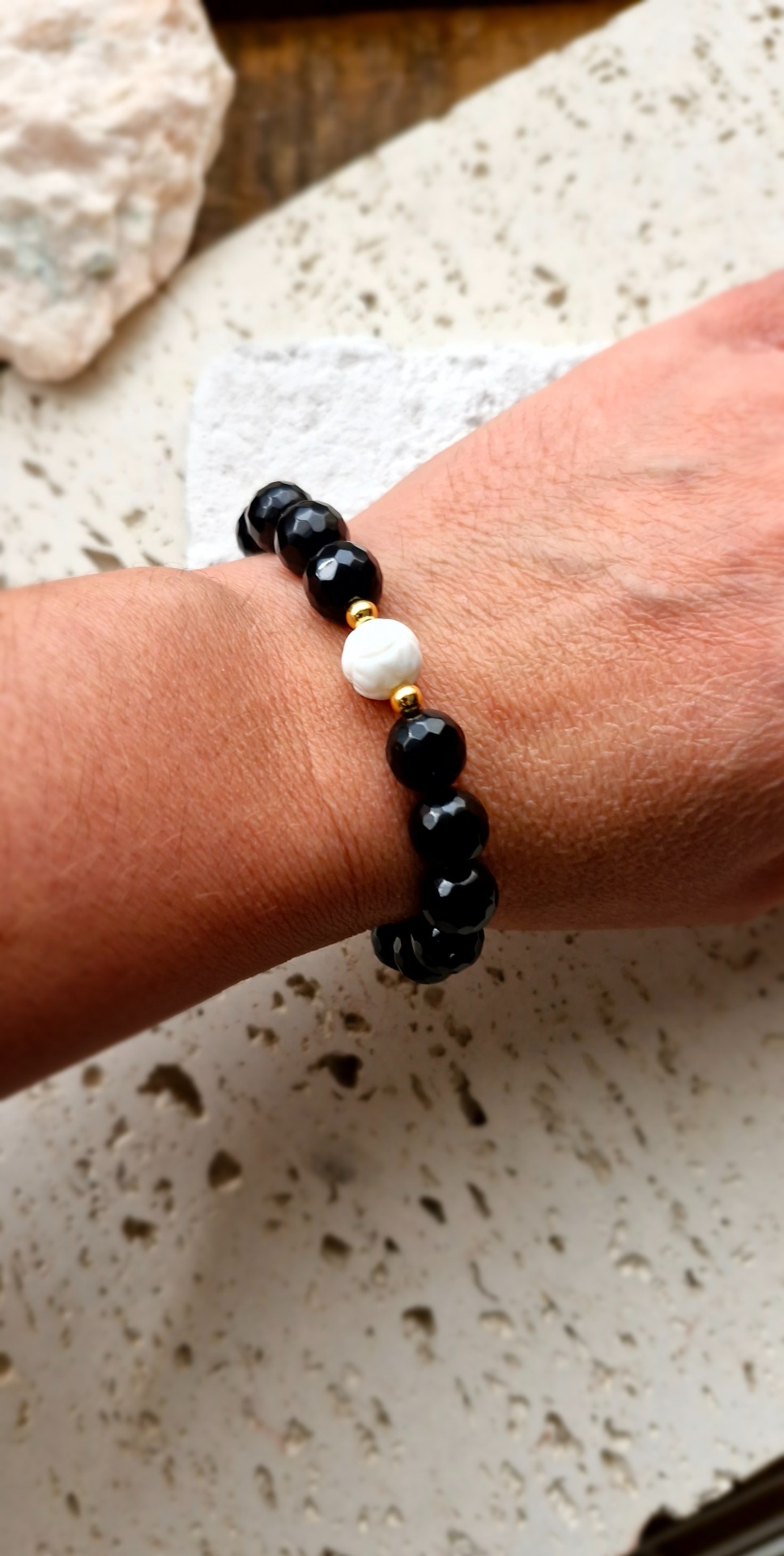 Narámok z Ónixu doplnený korálkou z mušle so symbolom lotosového kvetu