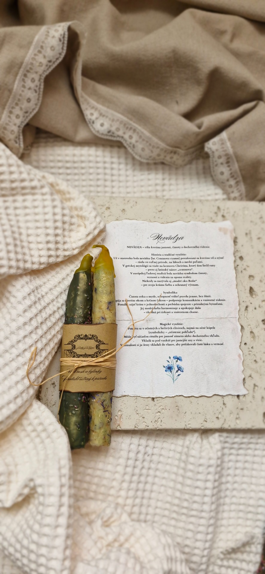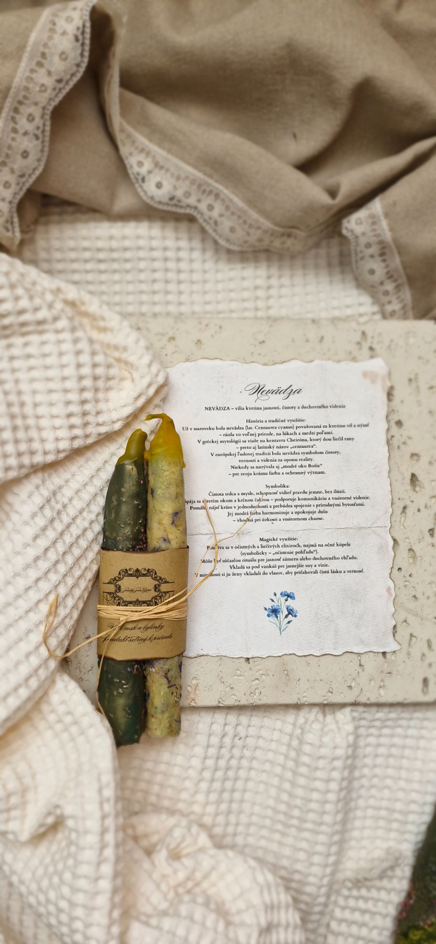 ~Sviečky sú vyrobené včelieho vosku, ich magickú vôňu pocítite hneď pri prvom stretnutí, no akonáhle sviečku aktivujete, pocítite čistiacu zmes byliniek, ktorá ma špecifickú vôňu.
