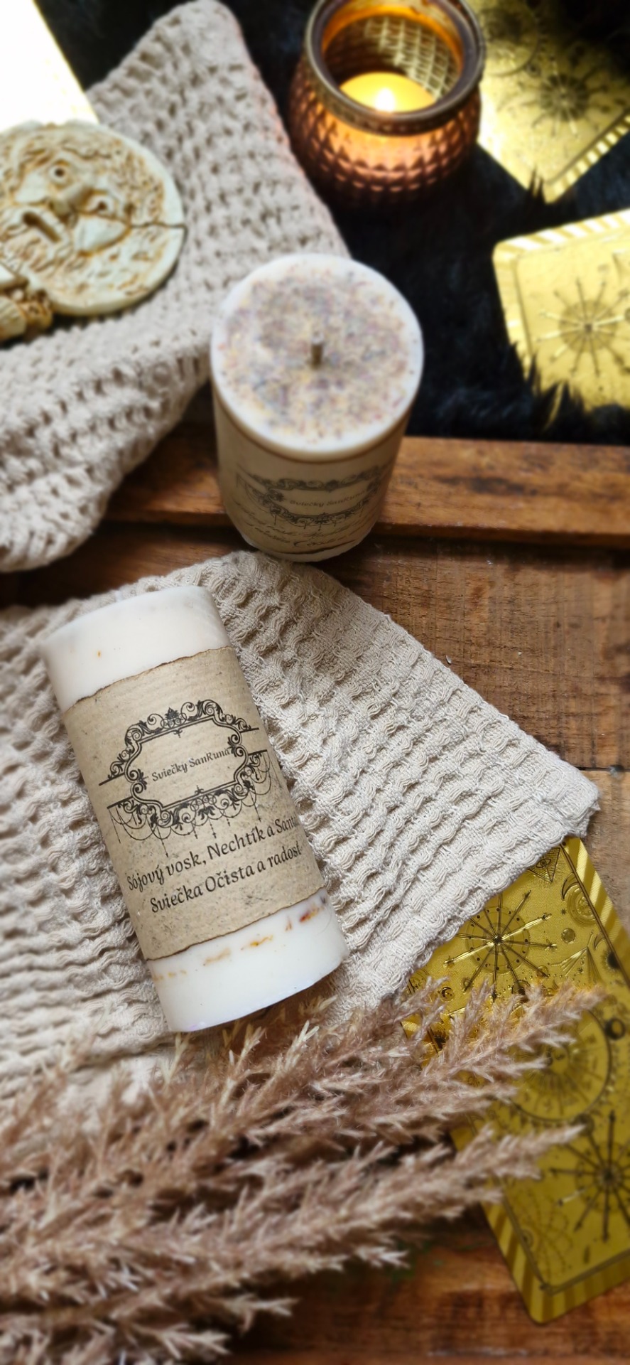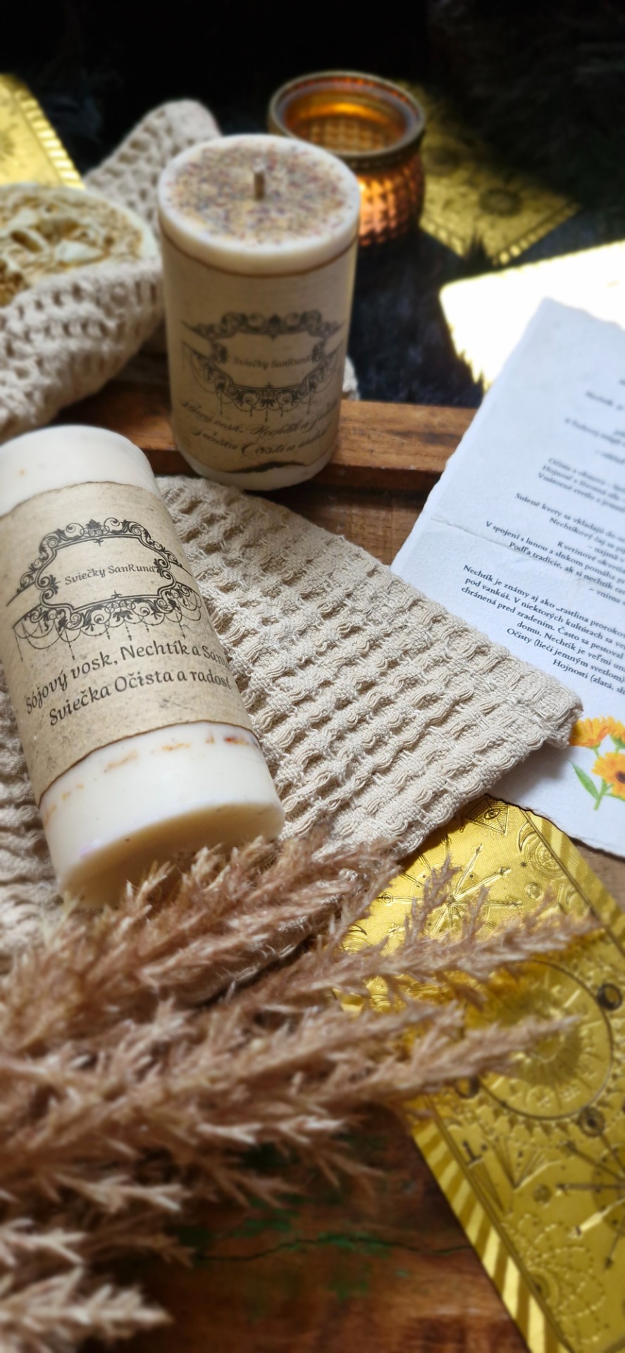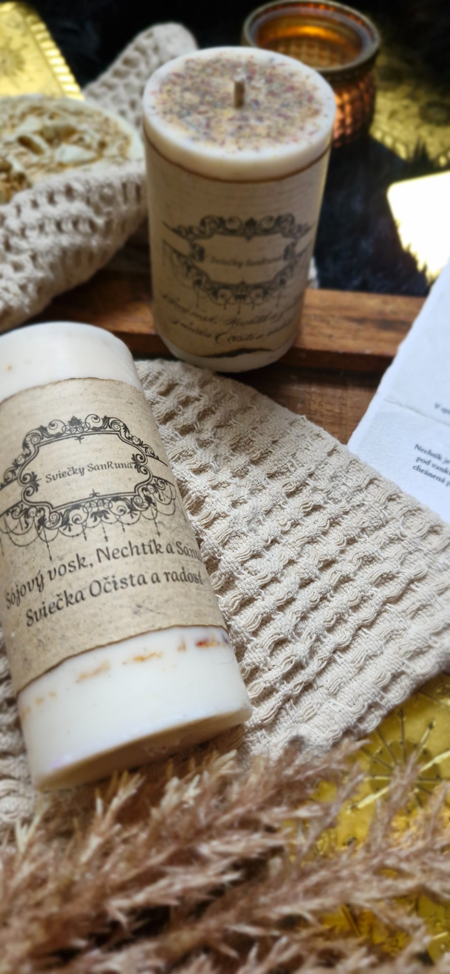 Rituálna, samo stojaca sójová sviečka s esenciou Santalového dreva a nechtiku na hlbokú očistu priestoru a energie. Nechtík je symbolom ochrany, regenerácie a jemnej očisty. Vytvára posvätnú atmosféru, podporuje sústredenie a vnútorný pokoj.