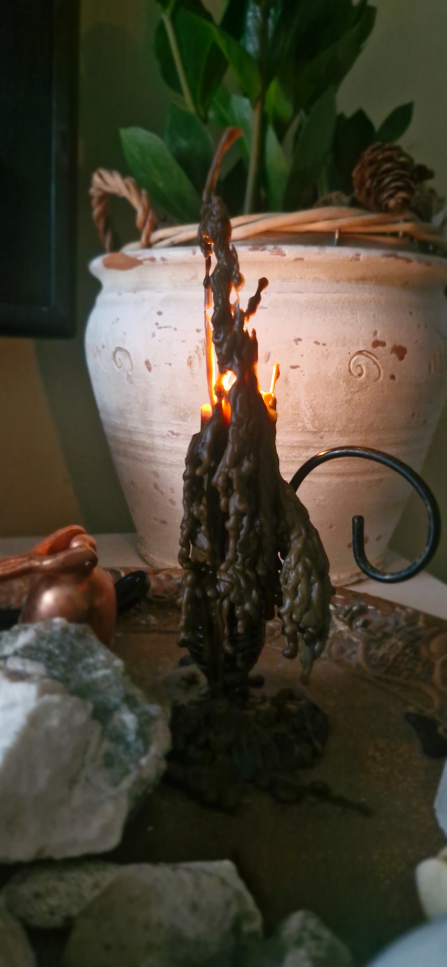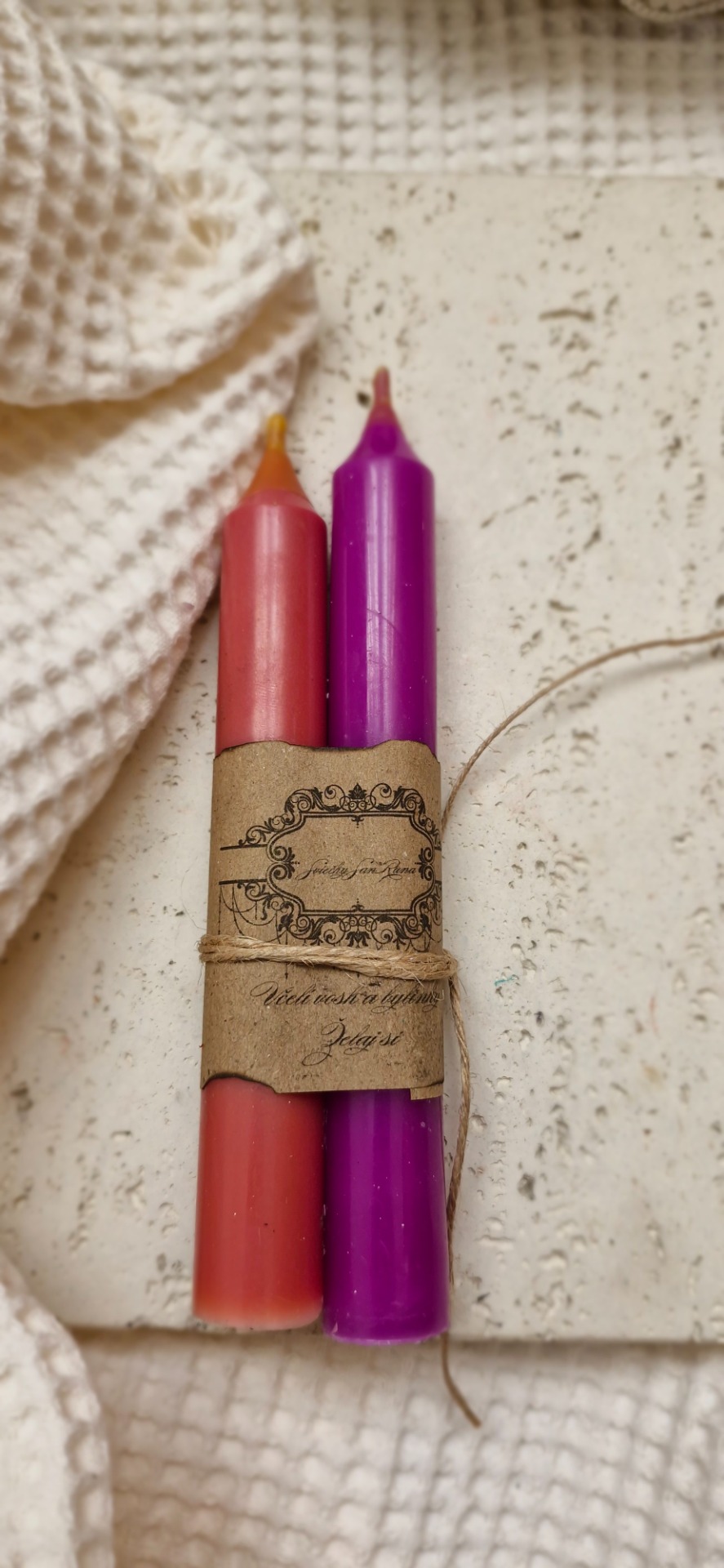 Toto sviečkové kombo spája dve ručne vyrábané sviečky z čistého včelieho vosku, určené pre rituály lásky, intuície a vnútorného prepojenia.