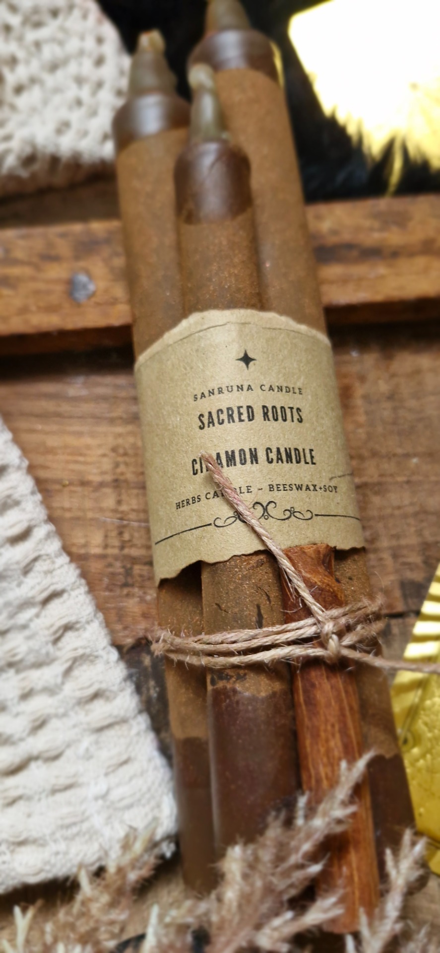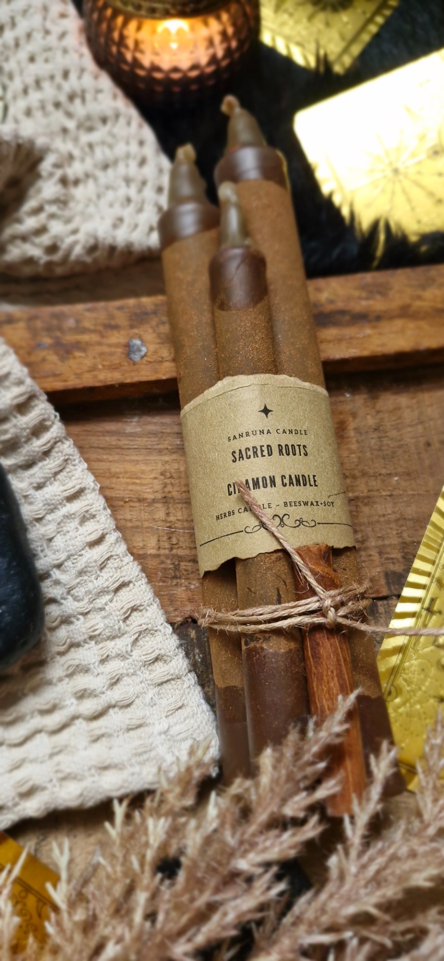 Ručne odlievaná sviečka so škoricou – symbolom hojnosti, ochrany a životnej sily Zeme.