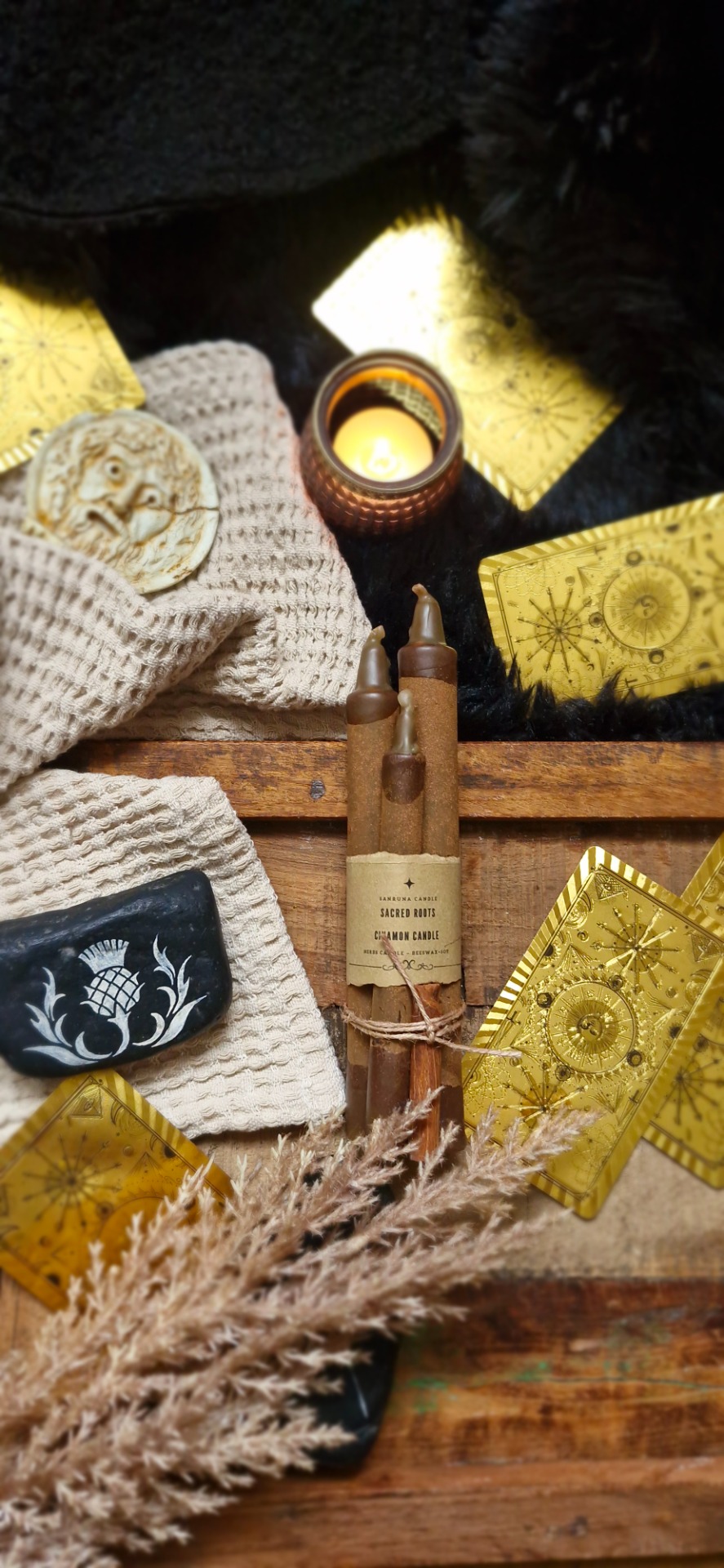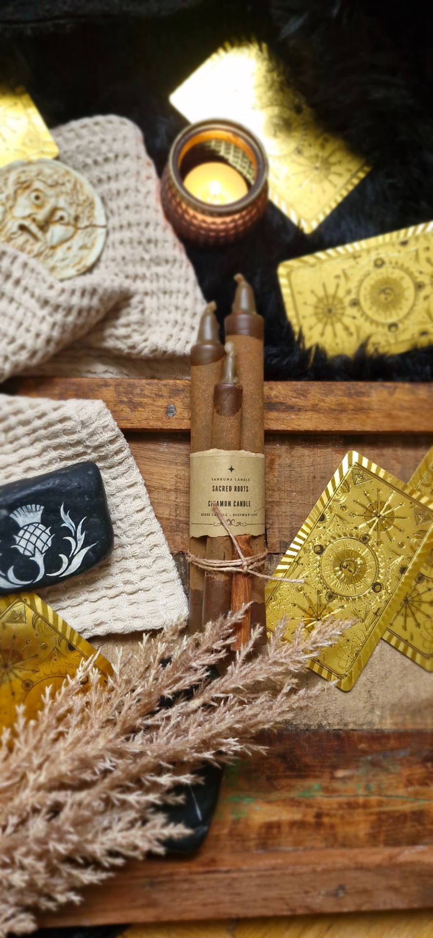 Počas horenia vosk voľne vyteká a vytvára zemité, koreňové obrazce, ktoré môžu niesť odkazy rastu, istoty a dôvery v proces.